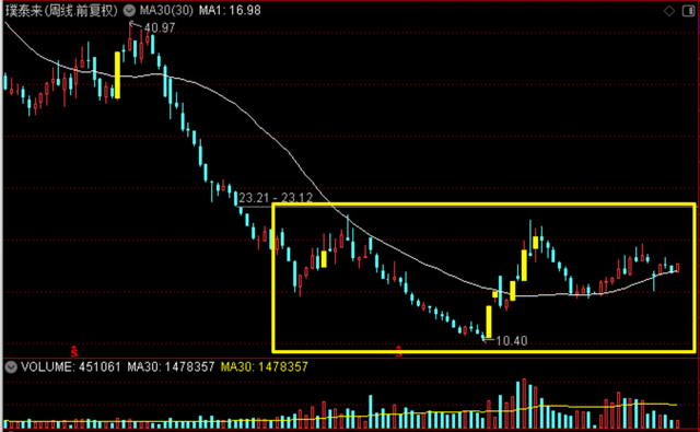 左肩反弹成交量明显放大,之后,价格创新低,成交量明显缩量。新低之后,价格在底部成交量创出新高,完成头肩底的头部构筑,目前正处于头肩底的右肩构筑中。底部横盘,1年零3个月。